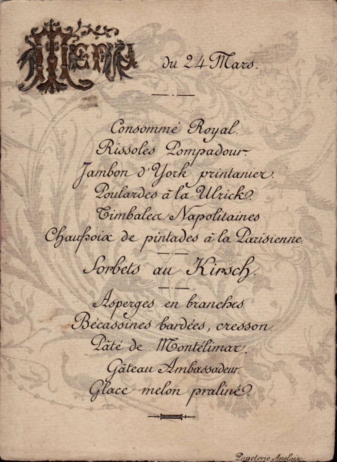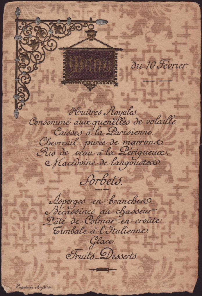 Menus non datés, monogrammés,....